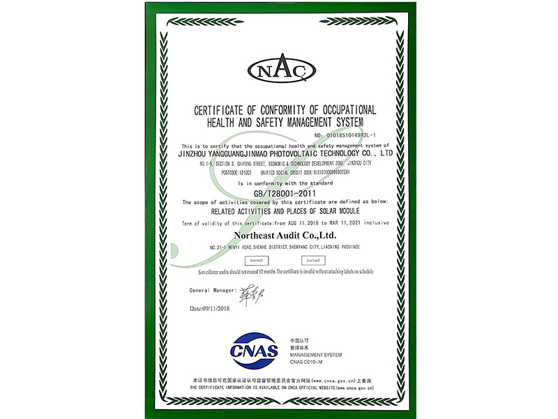 職業(yè)健康安全管理體系認証証明書(中國語)