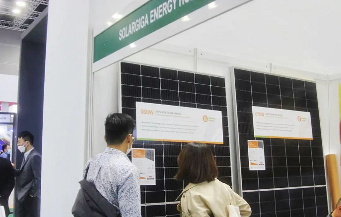 在本屆展會上,陽光能源針對當(dāng)?shù)啬茉词袌龊驼咝枨螅瑤砹巳碌母咝阅芙M件產(chǎn)品:182雙玻72半片組件和210PERC雙玻66片組件,吸引了眾多業(yè)內(nèi)專業(yè)觀眾的駐足參觀。