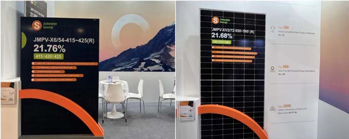本屆香港展會(huì),陽光能源展出了兩款高效率、高發(fā)電量的Giga系列產(chǎn)品,分別是182 N型TOPCon 54片單玻組件和182 P型PERC 72片雙玻組件。其中,182 N型TOPCon 54片單玻組件采用全黑設(shè)計(jì),量產(chǎn)效率可達(dá)到21.76%,兼具美觀和優(yōu)異的發(fā)電性能,被普遍應(yīng)用于高端住宅等應(yīng)用場(chǎng)景,獲得眾多現(xiàn)場(chǎng)觀眾的駐足了解。