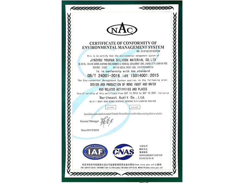 環(huán)境管理體系認證證書(英文)